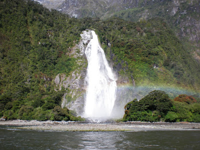 Le Milfords Sound. Nous étions dans une espèce de péninsule, sur la mère légèrement agité, entouré de falaises abruptes, certaines mesurant plus de 700 mètres, des montagnes partout, des cascades partout, des canyons partout, le tout recouvert d'une végétation intacte de 80 000 000 ans, un vent plutôt puissant et froid mais un soleil tout aussi puissant, et des phoques...